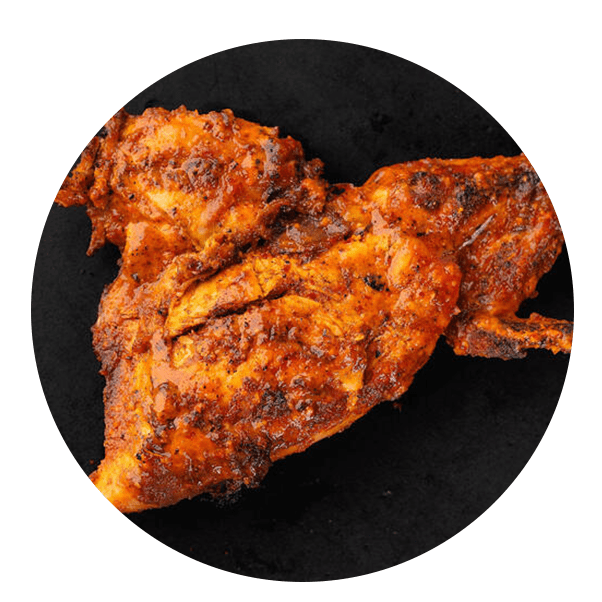 Enjoy the tasty and grilled 1/4 chicken basted in our Portuguese sauce
