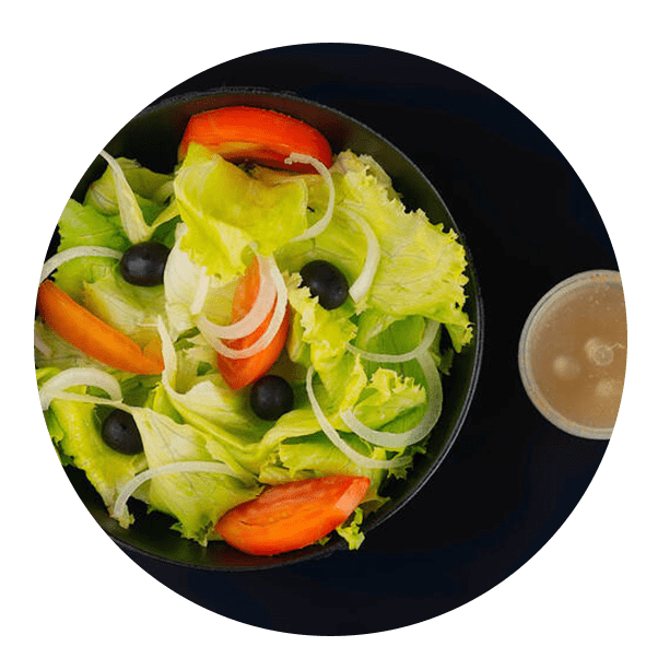 A fresh Portuguese salad with crispy lettuce, tomato, onion and olives